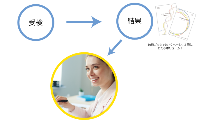 ネットの遺伝子検査にはないface to face のカウンセリングで資料だけでは終わらせることなくダイエットをサポートします。